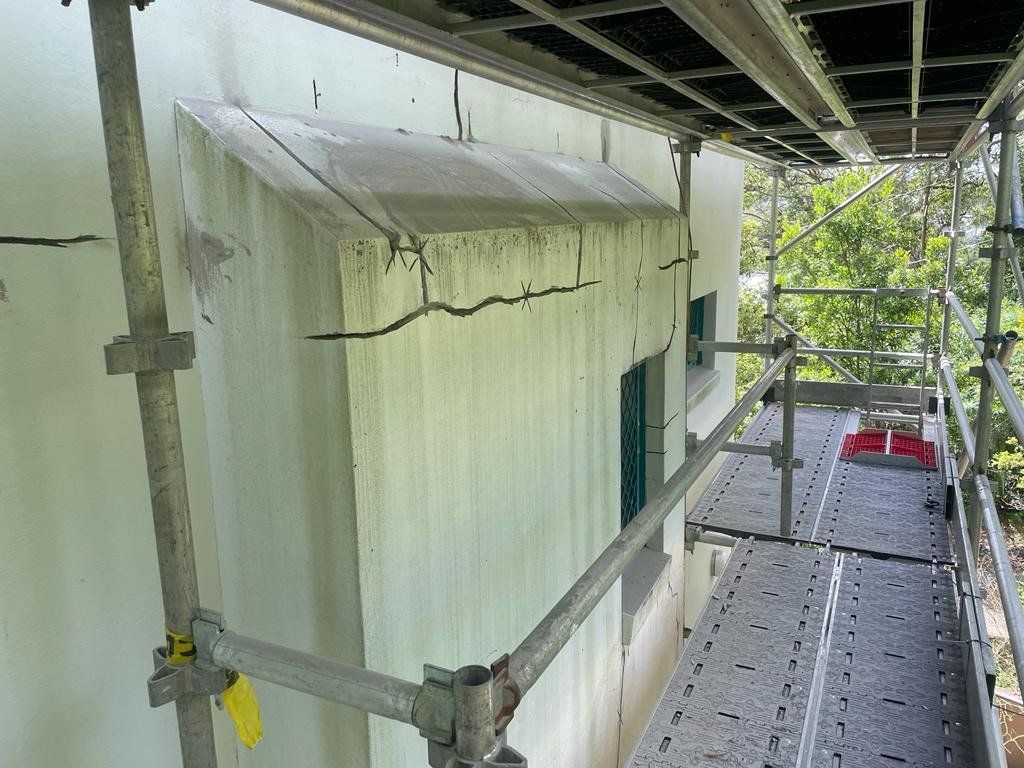 BUILDING FACADE CRACK REPAIR, RENDER & REPAINT