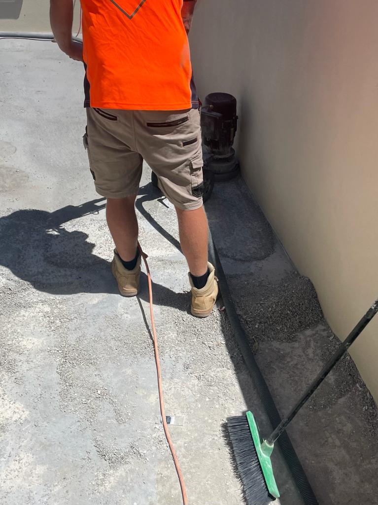 NCR were engage to remove the existing tiles and membrane from a 100m2 Balcony in Coolangatta. The balcony formed part of the roof structure for the unit below and water ingress had started to cause damage in several areas of the residence. Safety, as always was our major consideration given that the balustrade need to be removed in order to remove the existing tiles and membrane and then reinstall the new waterproofing and tiles. Utilising our trusted sub-contractors, a full scaffolding system was erected to insure the area was safe for work to commence. The system also provided protection from debris falling below toward other residences. Demolition and grinding of the tile and membrane removed all reminisce of the previous membrane and following this all cracks were routed out & sealed and a full 3 coat membrane system was reinstalled. This included detailing of surface defects, bandaging to floor wall joints and the installation of a waterproofing upturn to the columns and floor wall joint to insure a watertight system. There previously had not been a skirting tile nor any upturn waterproofing applied to the floor wall joints and NCR identified this as a potential risk for water ingress. Following the waterproofing system being installed the NCR team then laid 450 x 450 outdoor tiles in a neutral tone were reinstalled to the area and the balustrade was then reinstalled. A beed of uv resistant silicone was then applied to the top perimeter of the skirting tiles, balustrade feet and to the sliding doors where the tiling met the doors ensuring all possible areas for water ingress were addressed.