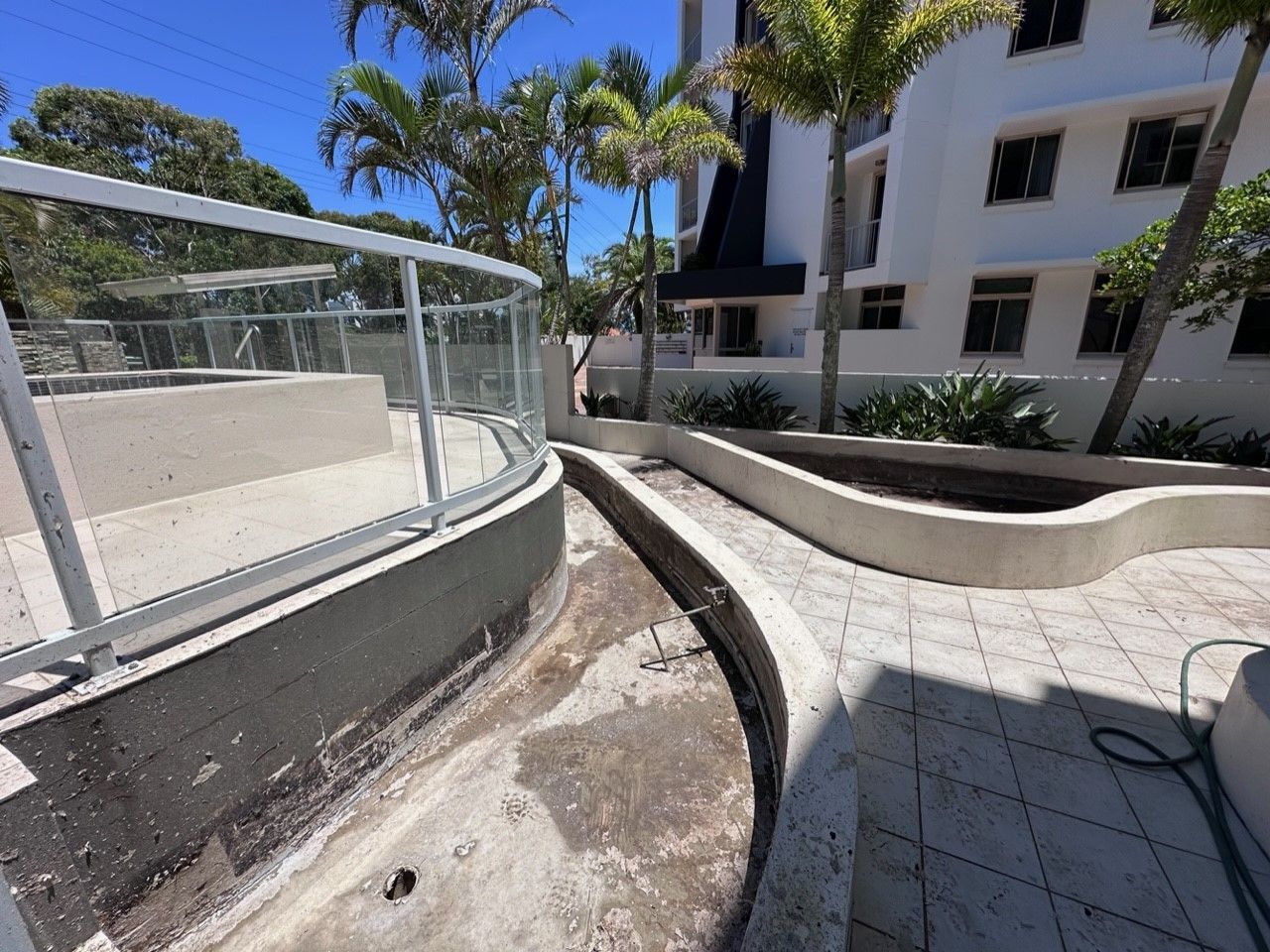 NCR was engaged to reinstate the Waterproofing Membrane to approximately 100 square meters of planter boxes at an apartment complex on Kirra Hill. The scope of work consisted of the removal of existing vegetation and soil, the removal of the original waterproofing membrane and surface prep and the reinstatement of the new waterproofing system.