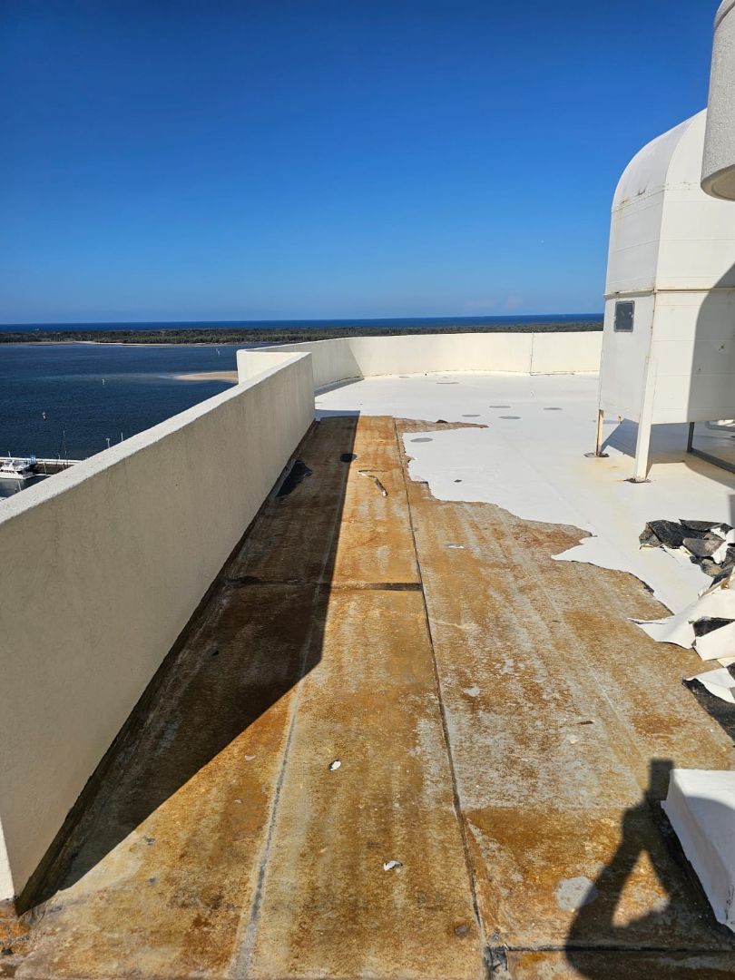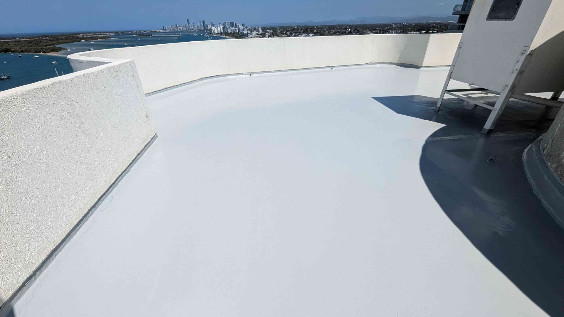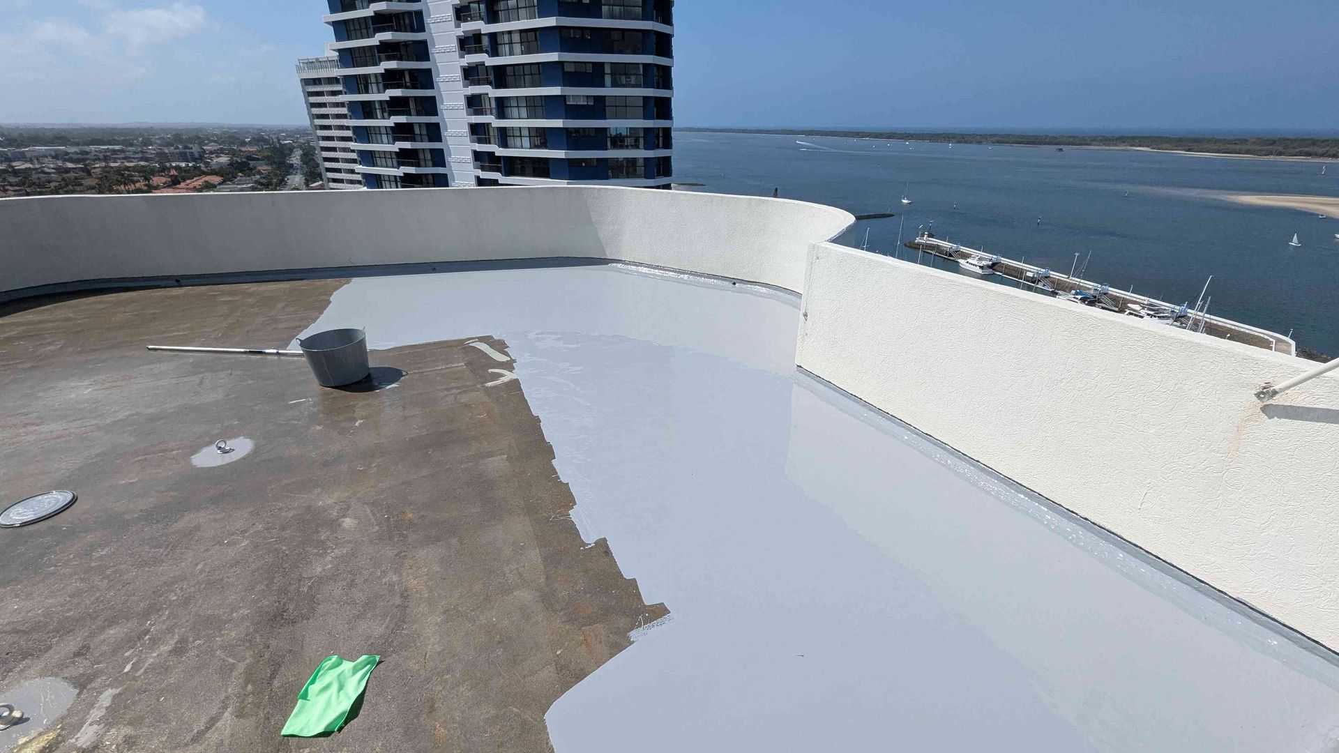 NCR completed a full rooftop membrane removal and replacement at Broadwater Shores, delivering a trafficable, UV-resistant polyurethane waterproofing system designed for harsh rooftop exposure.